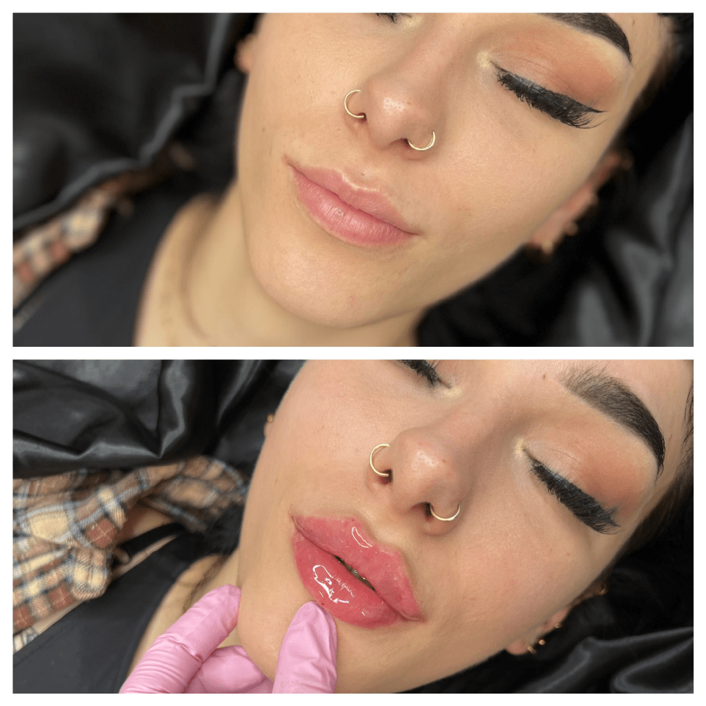 Gallery of before and after treatment Lip Filler, Before and After Non Surgical Rhinoplasty (Filler in the nose) Tear Trough filler Injectable treatment Radio Frequency, After 6 sessions Cheek Filler (Before Left, After Right) Russian Lip Filler, Before and After Bride Glow up! Chemical peels x4, microneedling, anti wrinkle, Filler in the naso-labial area Wrinkle relaxing